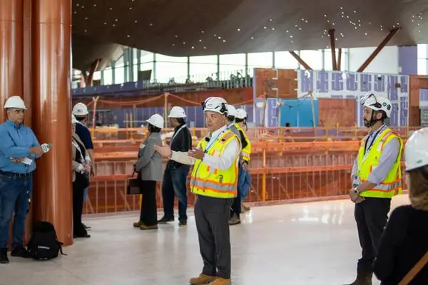 During the tour, Chad Willis, vice president of Planning, Environment and Sustainability detailed new dynamic lighting systems, ecofriendly processes and functions of the new terminal’s varied spaces.