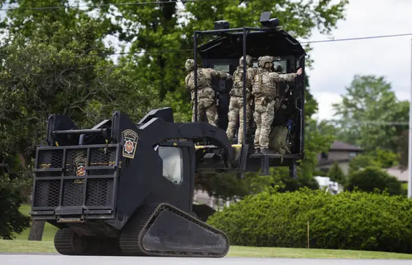 As authorities began moving armored equipment into the yard, the man came out with his hands up and surrendered.