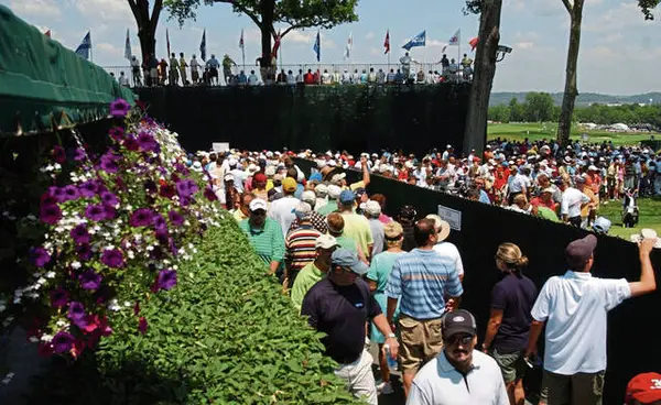 There is no general fan parking available at the Oakmont Country Club site. Instead, fans must park in either of the two large fan parking lots — the red lot at Hartwood Acres or the blue lot at Monroeville Mall — and take a coach bus shuttle to the championship.