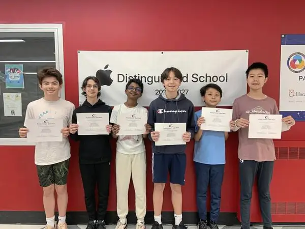 A team of Dorseyville Middle School seventh-graders recently ranked first out of 30 teams in Pennsylvania in the Purple Comet Math Meet. The team members were Moxley Chiu, Samuel Ettinger, Shengfeng Fei, Akhil Muvvala, Louis Vandapel and Brian Xu. In addition to being the first-place team in the state, the group ranked 16th out of 298 teams in the United States, and also received an honorable mention designation for being given an overall international rank of 38th out of 1,047 teams.