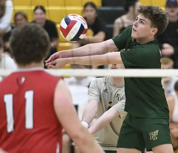 State College’s Derrick Campbell had a big kill late in the set to cut P-T’s lead to 24-21, but the Warriors won the very next point for a middle-set victory, pinning State College’s back to the wall for the rest of the match.