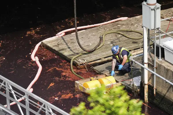 A boom was deployed on the water quickly and later crews began to skim the heating oil product off the water, Fire Chief James Wallace said. They’ve begun to flush the storm drain system to push the product to the harbor where they have skimmers to capture it, he said. That effort will continue through the majority of the day on Thursday. Officials explained that the water appears red due to dye in the fuel.