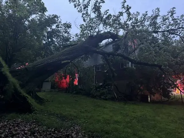 They found a huge tree that fell from the rear of the home and crashed through the roof. Limbs crashed into an upstairs bedroom.