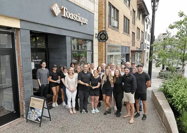 Toastique Corporate leadership joined the ribbon-cutting celebration Friday, including Brianna Keefe, Founder; Kyle Izett, President; Sean Keefe, COO; and Kelsey Forman, Director of Training.