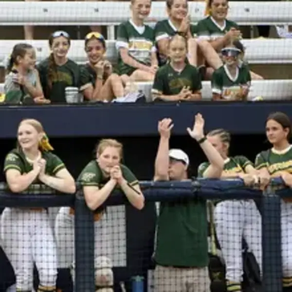 After Penn-Trafford won the PIAA softball championship Friday at Penn State, Warriors coach Denny Little had his players take photos with some younger fans celebrating from the bleachers at Beard Field.