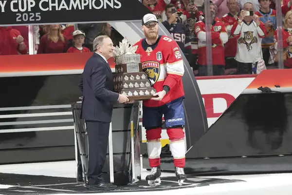 SUNRISE, Fla. — Sam Bennett won the Conn Smythe Trophy as playoff MVP on Tuesday night after leading all players in goals scored to help the Florida Panthers win a second consecutive Stanley Cup championship.