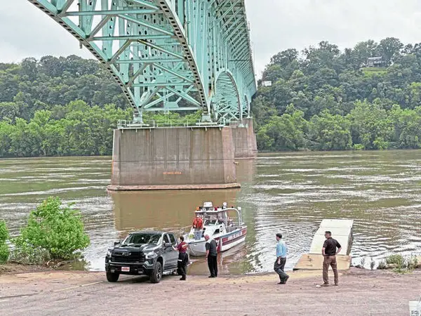 Eureka Fire Rescue EMS pulled Link to a boat launch beneath the bridge with the assistance of a New Kensington Fire Department river rescue crew.