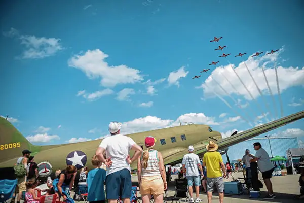 The mid-day mercury hit 90 degrees around 2 p.m. at the Unity airport — and the weather’s weight was reflected in the air show’s crowds, which were visibly thinner than the estimated 20,000 people who turned out Saturday, the event’s first day.