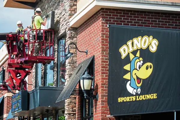 Matthew Wolff watched Monday afternoon as Weyand Sign and Lighting crews finished removing the giant red letters from the front of Dino’s Sports Lounge in Greensburg.