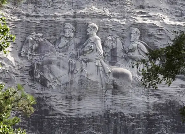 Stone Mountain’s massive carving depicts Confederate President Jefferson Davis, Gen. Robert E. Lee and Thomas “Stonewall” Jackson on horseback. Critics who have long pushed for changes say the monument enshrines the “Lost Cause” mythology that romanticizes the Confederate cause as a state’s rights struggle, but state law protects the carving from any changes.