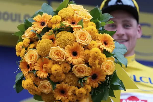 Van der Poel took the race leader’s yellow jersey from his Alpecin—Deceuninck teammate Jasper Philipsen in a second career stage victory on the Tour. Neither rider is considered an overall contender.