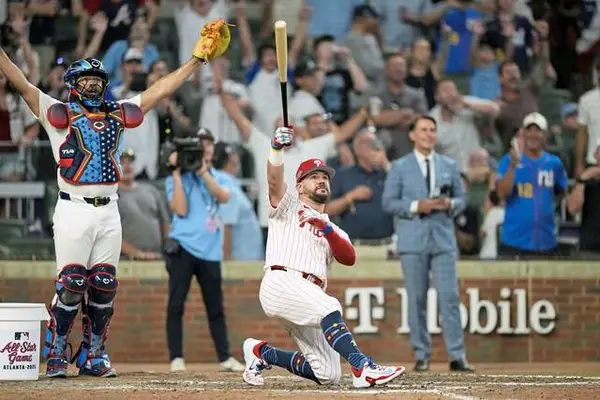 ATLANTA — Kyle Schwarber went 3 for 3 in the first All-Star Game home run swing-off to put the National League ahead 4-3 following a 6-6 tie in which the American League rallied from a six-run deficit Tuesday night.