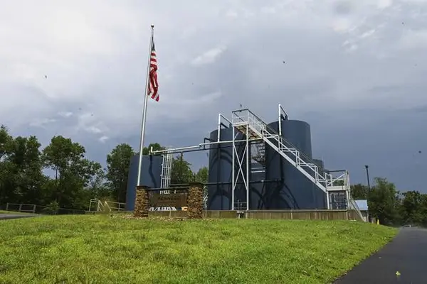 Wallace said the facility’s filtration building, storage tanks and offloading area sit above a “large bathtub,” with an enormous plastic tarp below layers of earth and clay to halt any water that seeps through the concrete.