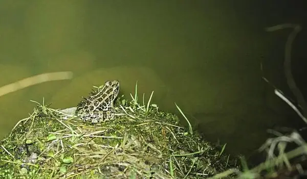 Part of the past year’s research focus has been on the pickerel frog, a dark frog with rectangular brown markings along its back.