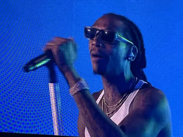 As the clock ticked toward 11 p.m., Wiz Khalifa brought out the hits, starting with the autotune heavy “We Dem Boyz.” The energy was high as he windmilled one arm, the band detonating the song around him.