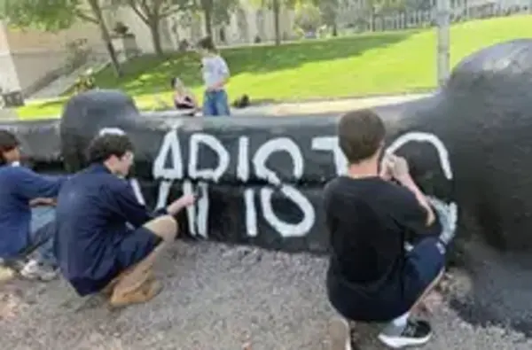 College Democrats painted the inflammatory messages the night before the visit. The school painted them over once and then again after the students restored the messages.