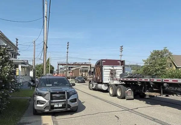 Harrison police responded to the Vine Street railroad crossing after receiving a report that a train had clipped the side of a tractor-trailer.