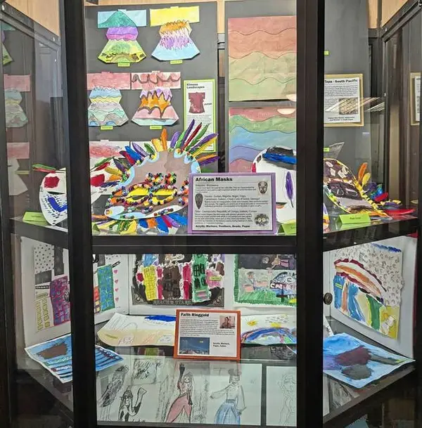 Visual art pops up all over the place in libraries — from tasks as simple as designing an eye-catching flyer to spread the word about our programs, to community collaborations as involved as the beautiful mosaic mural benches that grace the hillside of Library Park.