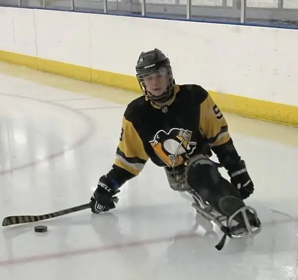 A major highlight of his sled hockey season was during the USA Hockey Sled Tier I Youth National Championship in Coral Springs, Fla. In the May 3 title game, the two-way defenseman scored a hat trick to propel the Mighty Penguins Junior Black team to a 7-1 national championship triumph.