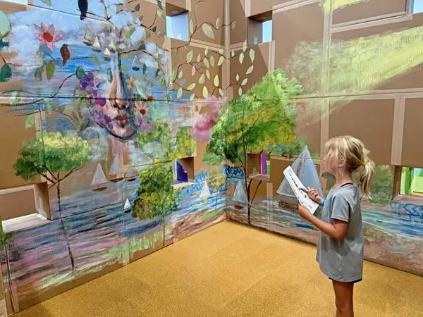 A pamphlet directed Haddie and her father, John Simpson, through multiple activities including a scavenger hunt inside an interactive art gallery called The Art Maze hosted by The Westmoreland Museum of American Art. Around every corner the two were met with new paintings designed in different art styles.
