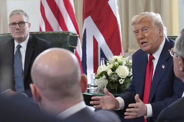 The U.S. president, speaking as he visited with British Prime Minister Keir Starmer at his Trump’s Turnberry golf course, said that the U.S. was “going to set up food centers,” but he didn’t offer specifics.