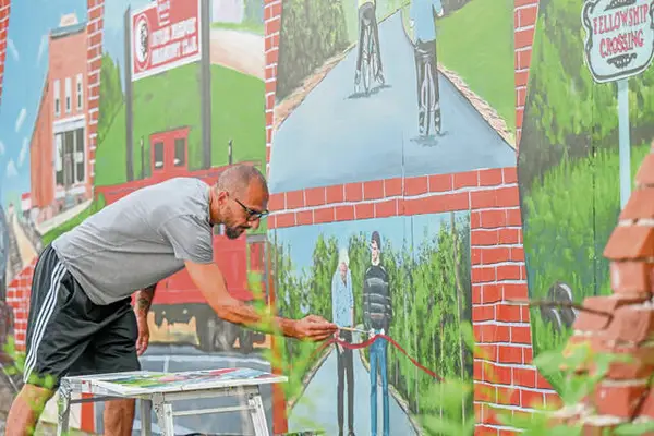 A giant mural mounted on a partial wall left standing along the Butler Freeport Community Trail in Winfield honors the visionaries, volunteers and public servants who gave years — and in some cases, decades — to make the popular trail a reality.