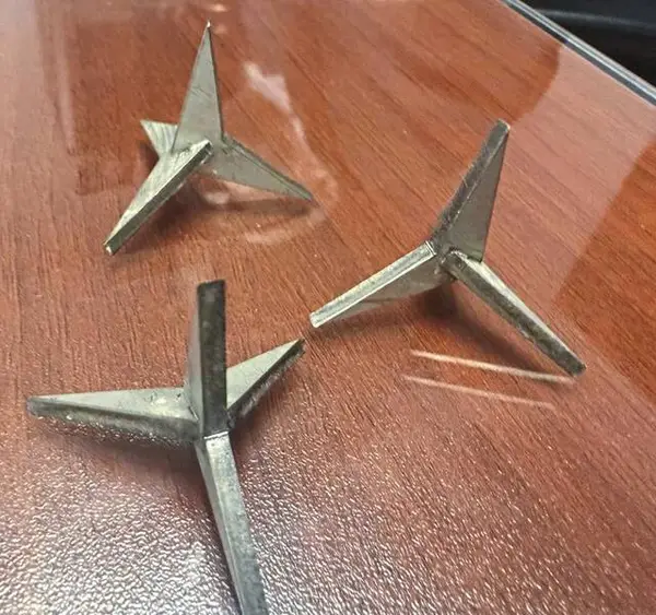 Caltrops are an ancient weapon, used by the Roman army to slow advancing armies by damaging wheels and horse hooves. They are designed such that at least one sharp point is always facing upward.