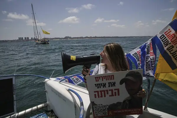 Yehuda Cohen, the father of Nimrod Cohen, an Israeli soldier held in Gaza, said from the boat that Netanyahu is prolonging the war to satisfy extremists in his governing coalition. Netanyahu’s far-right allies want to escalate the war, relocate most of Gaza’s population to other countries and reestablish Jewish settlements that were dismantled in 2005.