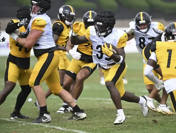• The offense prevailed 4-3 in the “seven shots” 2-point conversion simulation that opens the team portion of practice. Jaylen Warren scored on a run up the middle to start the drill, but pressure from Derrick Harmon hastened Aaron Rodgers’ throw to Scotty Miller, who was well covered by Darius Slay on snap No. 2. But Rodgers, 41, showed some good mobility in dancing around defenders and taking off for the goal line before Juan Thornhill approached to “tackle” him — freeing up an easy flip to an open Brandon Johnson to make it 2-1 offense. Black batted down a Rudolph pass, but Rudolph answered with a flip to running back Evan Hull on the right side to set up Thompson’s lone snap: a completion to Williams in a soft spot of the zone defense. The first teams returned for the final snap: a connection between Rodgers and Miller that did not count because Miller did not get a second foot down in the back of the end zone.