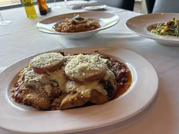 The main course is a choice of veal, duck Bolognese, chicken cutlet Downtown or penne cognac. Dessert choices include cheesecake, canoli, or chocolate cake. Cost is $55.25.