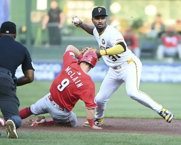 Oneil Cruz led off with a walk but was doubled off at first base when Nick Gonzales lined out to shortstop Elly De La Cruz for a game-ending double play.