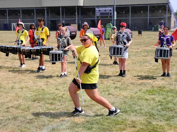 “I talked about the season and what we do, and I tried to hit all the main points of recruitment: Here are the trips that we go on. Here are all the fun things that we do during band camp,” George said about his spring visit to J.E. Harrison Middle School.