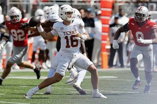 Manning is a first-year starter, so it’s easy to say there’s a learning curve. (It’s also easy to wonder how he couldn’t beat out a meh talent like Quinn Ewers last year.)