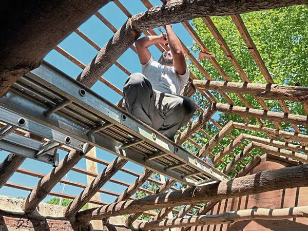 “We have to wait for rough-cut lumber to do the roof because they didn’t have plywood back then,” said Palumbo, owner of Encompass Building Group.