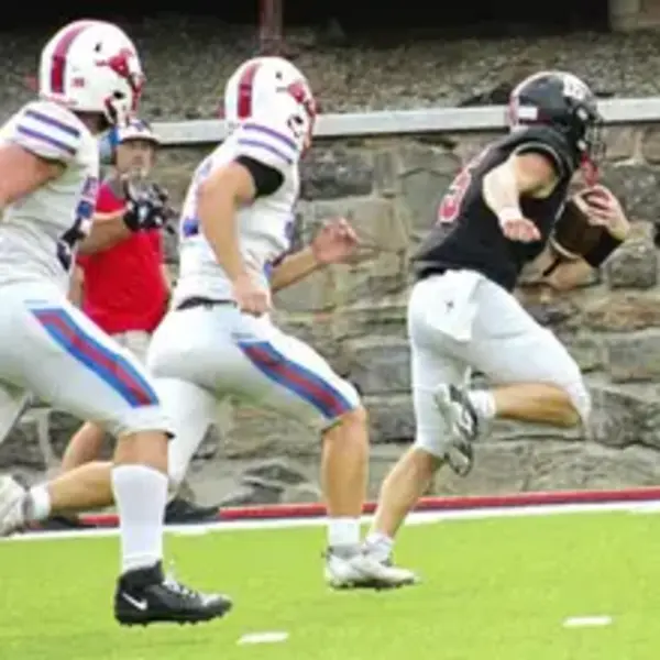 The Mustangs were short-handed with quarterback Noah Lion and running back Gio Guerriere sidelined with injuries suffered in the first half of last week’s home game against Ambridge.