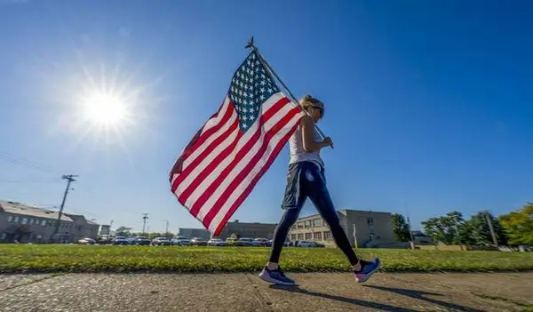 From about 5:30 a.m. to 8:30 p.m., walkers and runners of all ages carried flags up and down a 2-mile stretch to memorialize the nearly 3,000 Americans killed in attacks.
