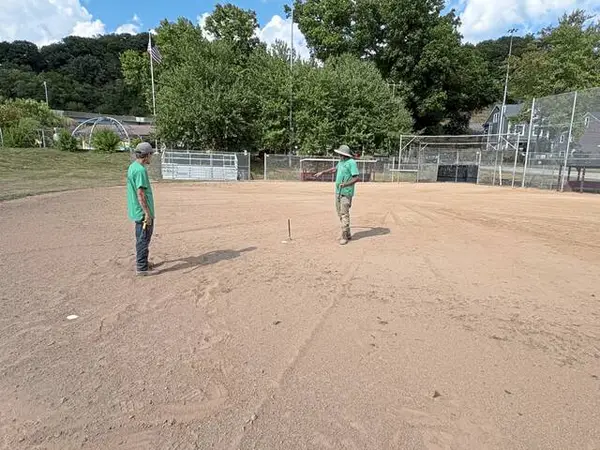Crews from Mars-based Treesdale Landscaping Company went to work on the infields in both play areas on Sept. 2.