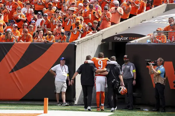 “It’s tough right now. We’re going to be OK. He’s a strong guy,” wide receiver Tee Higgins said after the game. “We look forward to seeing what the results are.”