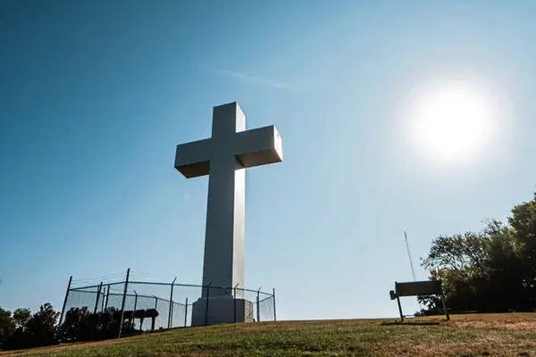 The steel Great Cross was preceded by a wooden version. Plans for the metal cross were delayed until after World War II because of a shortage of steel for nonwar efforts.