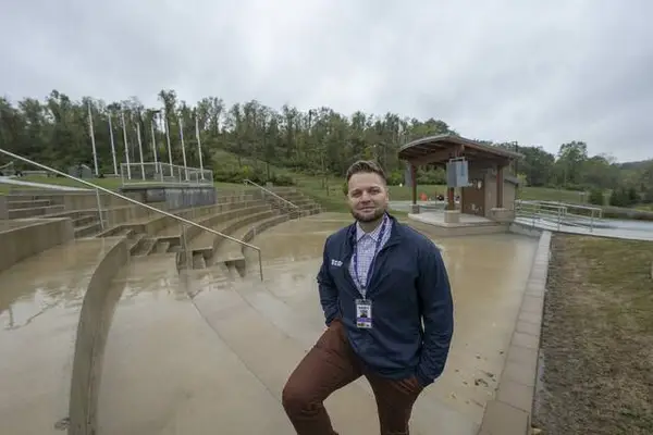 The amphitheater is located directly next to the borough’s municipal building near the Plum war memorial.