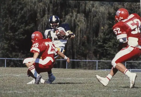 Kiski Area’s Asayan Jordan scored all four Cavaliers touchdowns on Sept. 28, 1985 in a 28-0 victory at Fox Chapel. The Kiski Area defense held the Foxes to just 20 net rushing yards. The hard-hitting contest produced a combined nine fumbles and six interceptions.