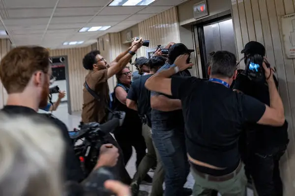 Hochul shared a video posted to X by a New York Daily News reporter that showed masked men boarding an elevator in a federal building in downtown Manhattan that houses immigration courts. Several of the men, one of whom appeared to be wearing a U.S. Immigration and Customs Enforcement badge, pushed photographers near the elevator, sending at least two people crashing to the floor.