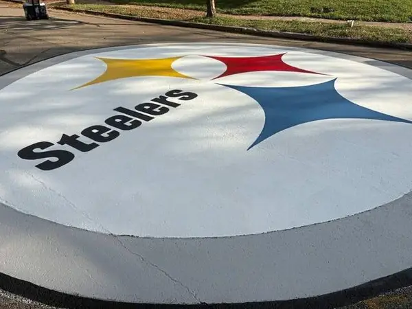 Jonquil Place in Mt. Lebanon has been adorned with a large Pittsburgh Steelers logo for nearly three decades. An annual tradition is to refresh the paint every year during the neighborhood block party, where neighbors gather on the street for food, fun and fandom.