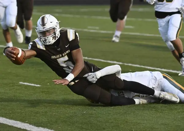The Golden Rams defense forced five turnovers — senior Jahmar Wright took an interception back 50 yards for a touchdown — and limited the Lancers to 32 yards of total offense while racking up 327 yards rushing and 439 yards overall.
