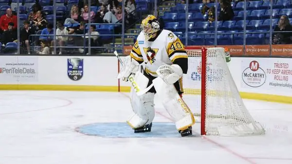 Penguins goaltender Maxim Pavelenko made 17 saves on 18 shots in regulation and overtime then stopped all three shots he faced in the shootout.