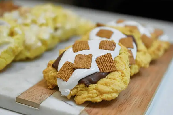 At trendy bakeries like Crumbl, they’re both. They feature fist-sized cookies sometimes served warm from the oven with oozing melty chocolate or chilled to keep smooth frostings at a perfect cream-pie temperature.