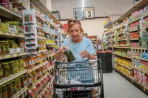 “I think the tariffs have something to do with it,” said Cummings, a semi-retired dental lab technician who was at the Harrison Walmart. “I bought 2¼ pounds of ground burger today, and I was shocked that it was $14.83. The pretzels my wife and I like are up to $6 or $7 a bag. So if I’m going to get the beef, I’m going to skip the pretzels.”