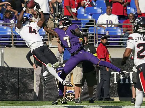 The Ravens, down starting cornerbacks Marlon Humphrey and Chidobe Awuzie, starting safety Kyle Hamilton and starting linebacker Roquan Smith against the Texans, are last in the league in scoring defense (35.4 points per game) and second to last in total defense (406.8 yards allowed per game).