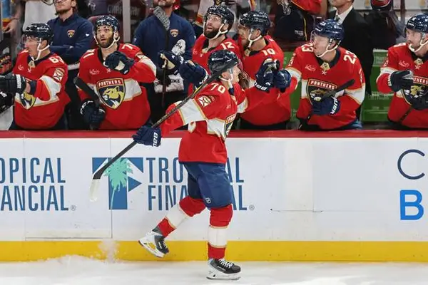 Florida also got goals from A.J. Greer and Carter Verhaeghe. Mackie Samoskevich added two assists.