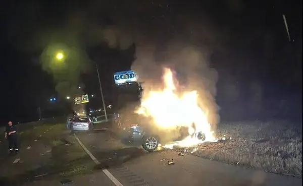 According to the fire company, just before firefighters arrived, multiple 911 dispatchers leaving their shift, along with a tow truck driver with McGann and Chester, had stopped and removed the drivers from both burning vehicles.